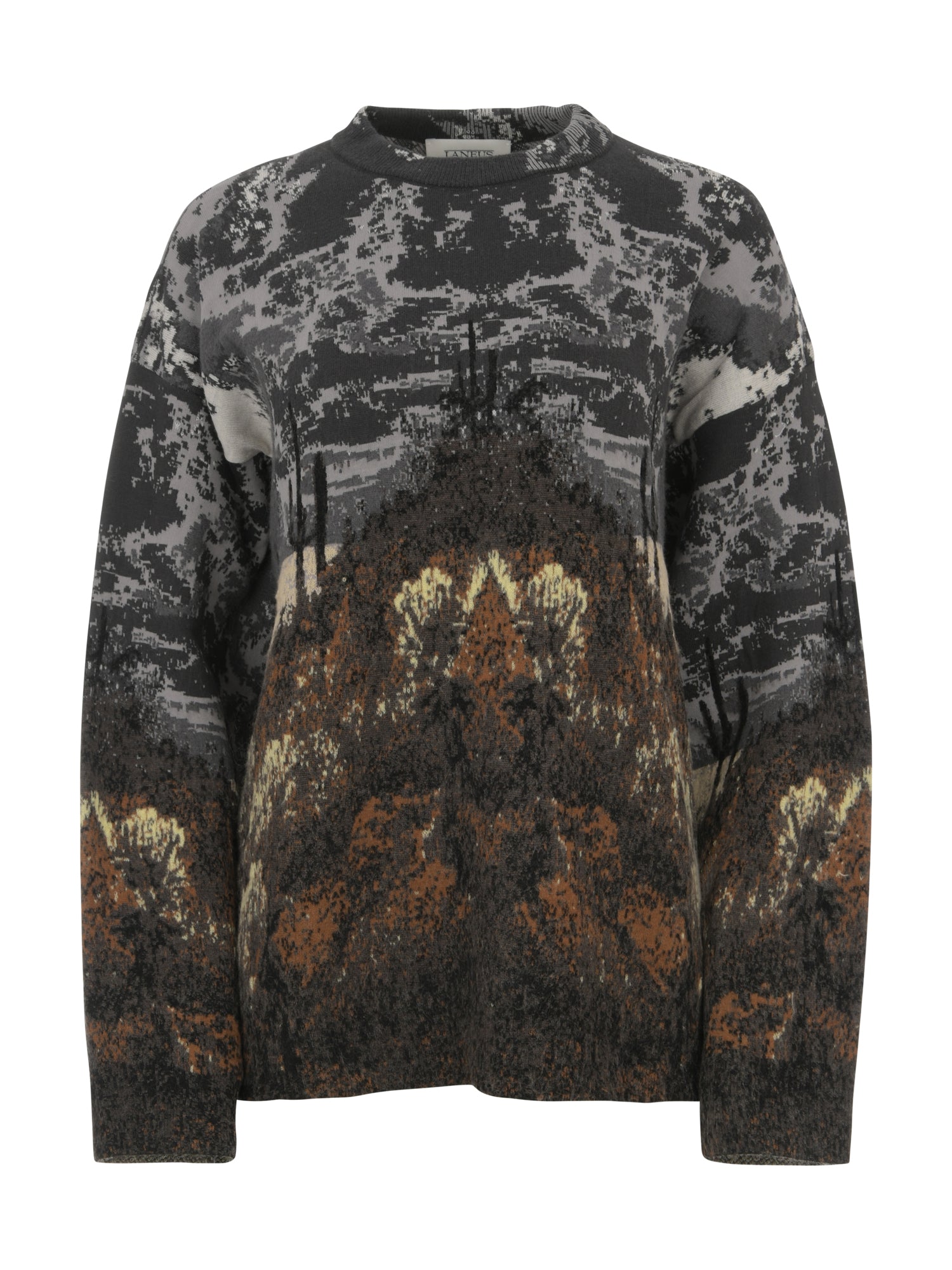 Material und Pflege: 50 % Baumwolle, 30 % Wolle, 10 % Polyamid, 5 % Viskose, 5 % Mohair. Handwäsche, Bügeln bei niedriger Temperatur.